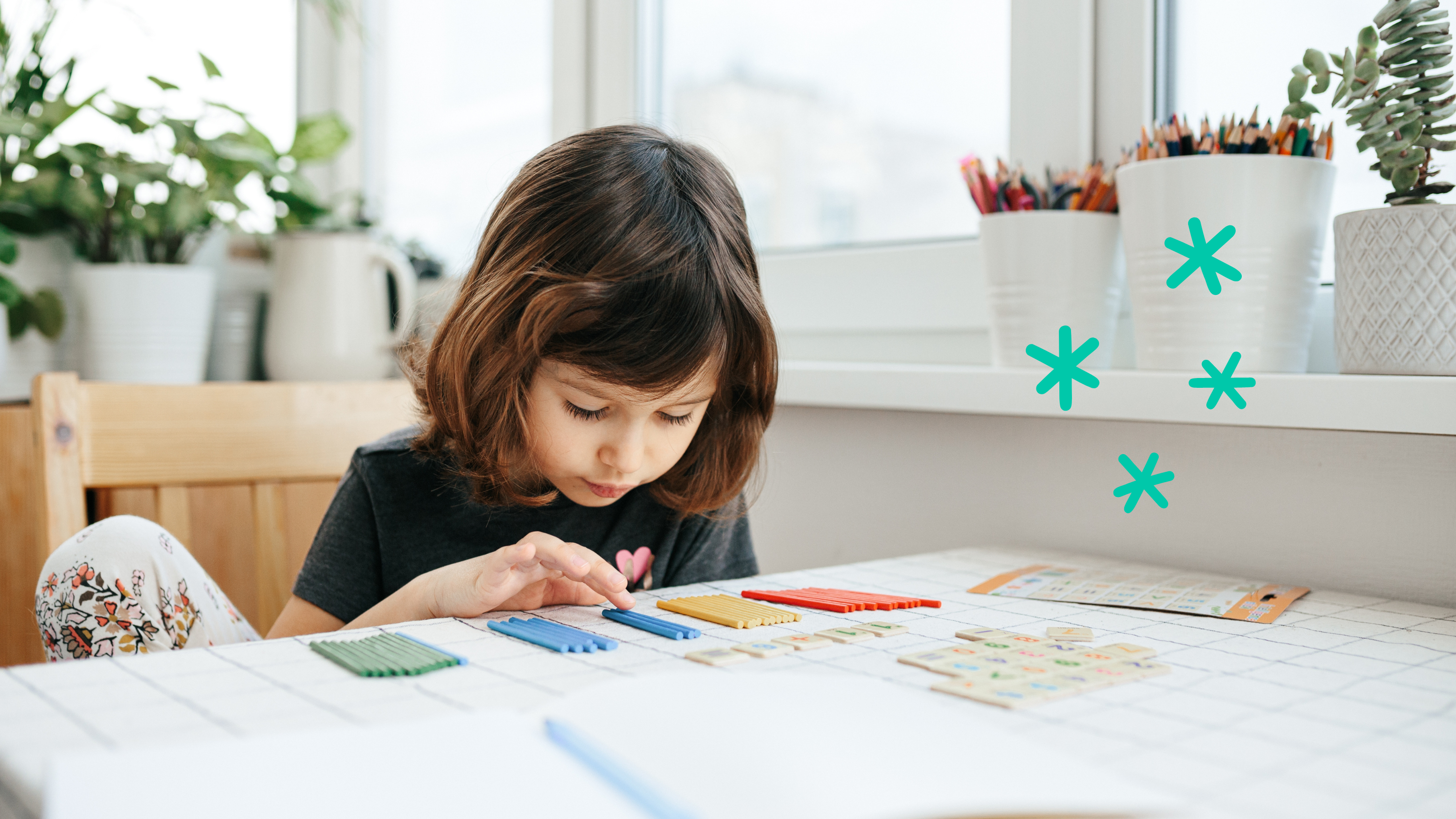 7 + 6 = ▢ → Ici, votre enfant pourrait utiliser la stratégie des quasi-doubles : 7 +7 = 14, donc je retranche 1 à 14 pour trouver la réponse. 7 + 6 donnent donc 13.